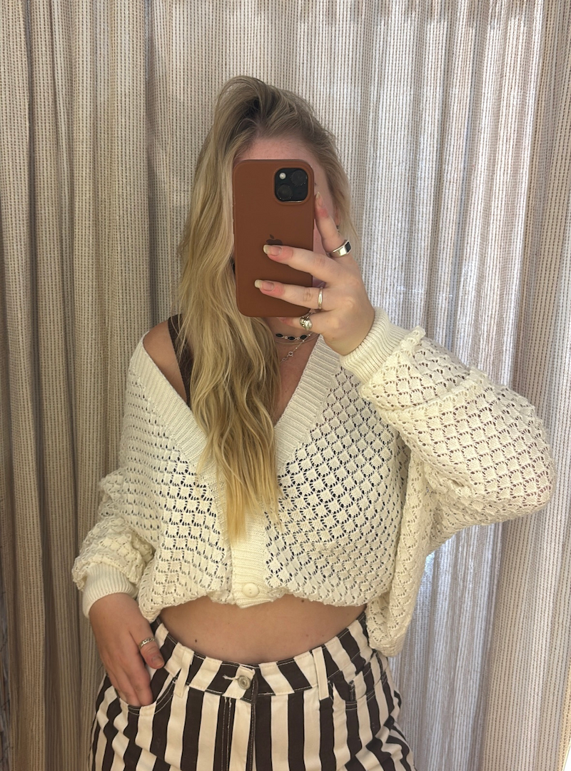 Delicado, aconchegante e cheio de charme. O casaco de tricot com textura de conchas traz um visual sofisticado e ao mesmo tempo leve, perfeito para composições que pedem conforto sem abrir mão do estilo.