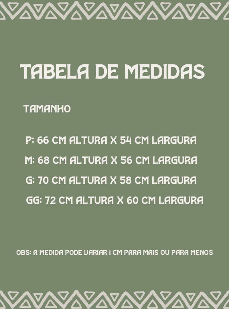 CONSULTE TABELA PARA MEDIDAS.