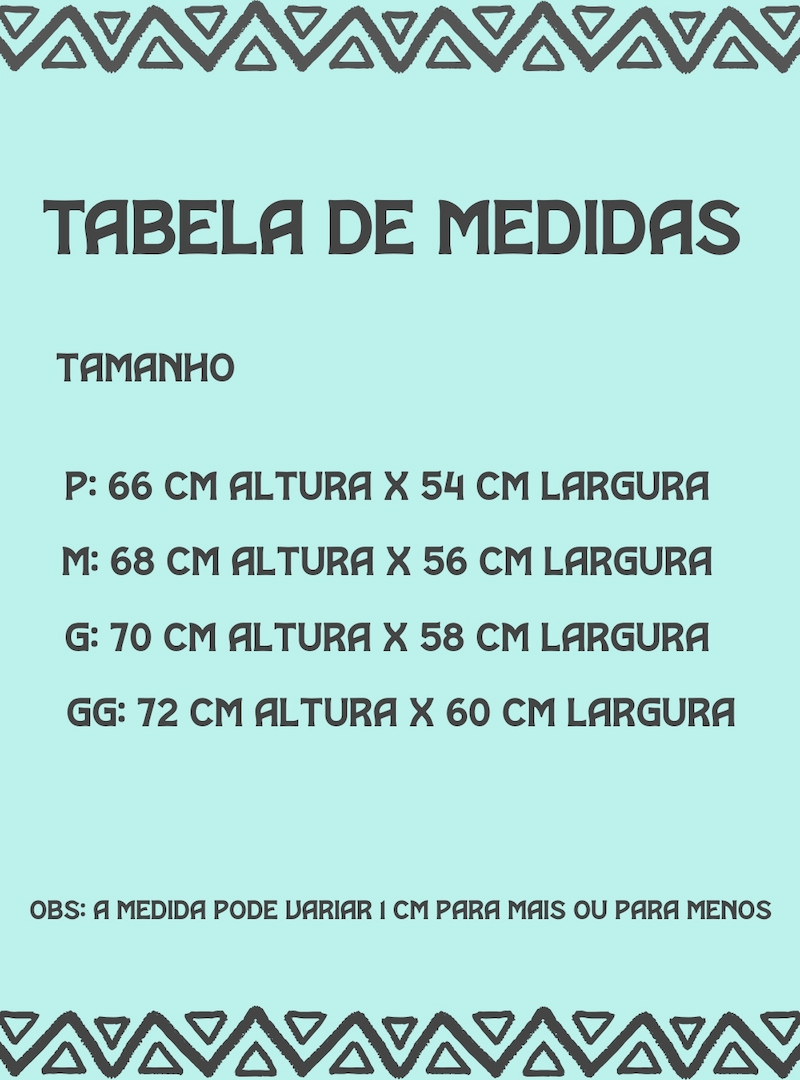 CONSULTE TABELA PARA TAMANHOS.
