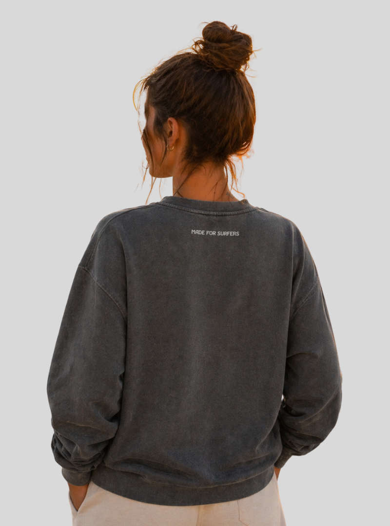 Peça que não pode faltar no seu guarda-roupas. Feito em algodão estonado dois cabos na cor cinza chumbo, possui ribana nas mangas, gola e barra. Peça despojada, ideal para usar na praia sem camiseta por baixo. Atendendo também a meia estação inverno. A Estampa “Made for Surfers” em modo minimalista nas costas nos faz lembrar quem somos.